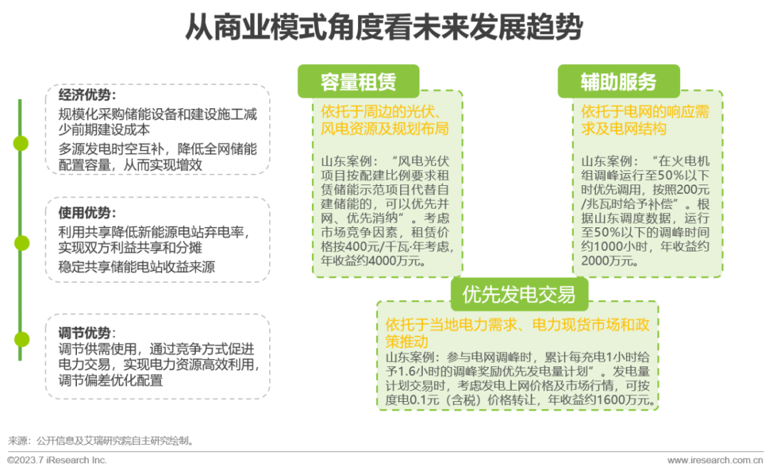 當前(新能源)強制配儲利用系數(shù)僅6%,盈利模式和調用需求還未展現(xiàn)出大規(guī)模使用有效性,在此背景下共享儲能以盈利直接性和多元性為優(yōu)點逐步在市場中突出。同時相較于自配儲能的分散方式,共享儲能具有調度運行更高效、安全質量更可控、經濟效益更凸顯等多重優(yōu)勢