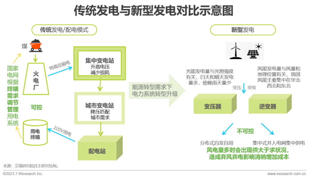 新舊電力系統(tǒng)轉型升級下,能源的可控化和可儲化成為發(fā)展的核心。傳統(tǒng)發(fā)電主要依靠燃煤(小部分有燃氣等)。現(xiàn)階段由于全球氣候危機和環(huán)境危機影響,雙碳和能源轉型正火熱發(fā)展中,以風光發(fā)電為主流的新型發(fā)電方式開始逐漸替代傳統(tǒng)發(fā)電。
