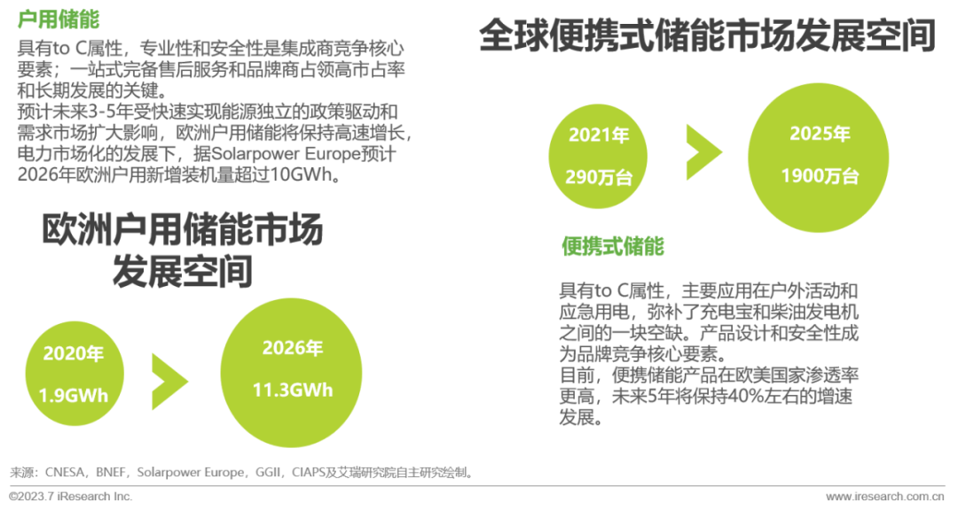 儲能海外市場高速發(fā)展主要集中在戶儲和便攜式儲能兩大領域,歐洲和美國是全球戶用儲能裝機主力,各占據(jù)約1/4的市場。高速發(fā)展的主要驅動因素有以下幾方面: