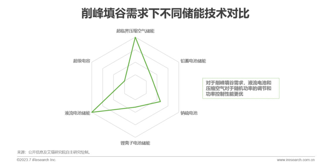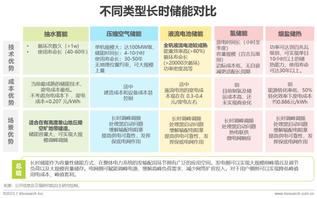 如果說短時儲能主要針對應急和小時級別調峰調頻需求。那么長時儲能會在可再生能源發(fā)電滲透率越高的場景下發(fā)揮更大發(fā)展?jié)摿ΑoL光電的占比越大,減少棄電、調頻調峰以及長時儲備的需求就越大。相較于短時儲能,長時儲能可以更好的實現(xiàn)電力平移,削峰填谷平衡電力系統(tǒng)、規(guī)?;瘍Υ骐娏捅U想娏Ψ€(wěn)定性。