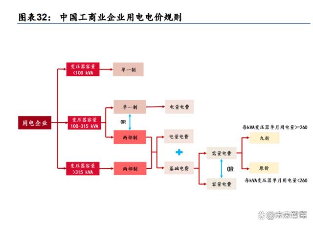 第三監(jiān)管周期電價改革鼓勵用戶配儲,優(yōu)化最大需量降低基本電費。2023 年 5 月 15 日, 國家發(fā)改委印發(fā)《國家發(fā)展改革委關(guān)于第三監(jiān)管周期省級電網(wǎng)輸配電價及有關(guān)事項的通知》, 輸配電價的改革利于引導電價機制合理化,倒逼工商業(yè)用戶進行需量管理:(1)明確單一 制和兩部制電價執(zhí)行范圍:①用電容量在 100 千伏安及以下的,執(zhí)行單一制電價;②100 千伏安至 315 千伏安之間的,可選擇執(zhí)行單一制或兩部制電價;③315 千伏安及以上的, 執(zhí)行兩部制電價,現(xiàn)執(zhí)行單一制電價的用戶可選擇執(zhí)行單一制電價或兩部制電價。(2)建 立負荷率激勵約束機制:選擇執(zhí)行需量電價計費方式的兩部制用戶,每月每千伏安用電量 達到 260 千瓦時及以上的,當月需量電價按核定標準 90%執(zhí)行。需量電價的優(yōu)惠有助于引 導用戶根據(jù)自身負荷合理報裝容量,提升變壓器利用率。