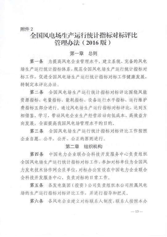 關(guān)于印發(fā)《風(fēng)電場生產(chǎn)運(yùn)行統(tǒng)計指標(biāo)體系》(2016版)、《全國風(fēng)電場生產(chǎn)運(yùn)行統(tǒng)計指標(biāo)對標(biāo)評比管理辦法》(2016版)的通知